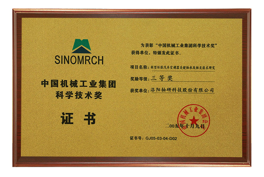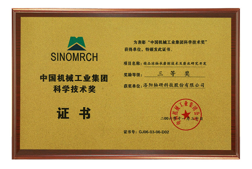 中國機械工業(yè)集團科學(xué)技術(shù)獎三等獎
