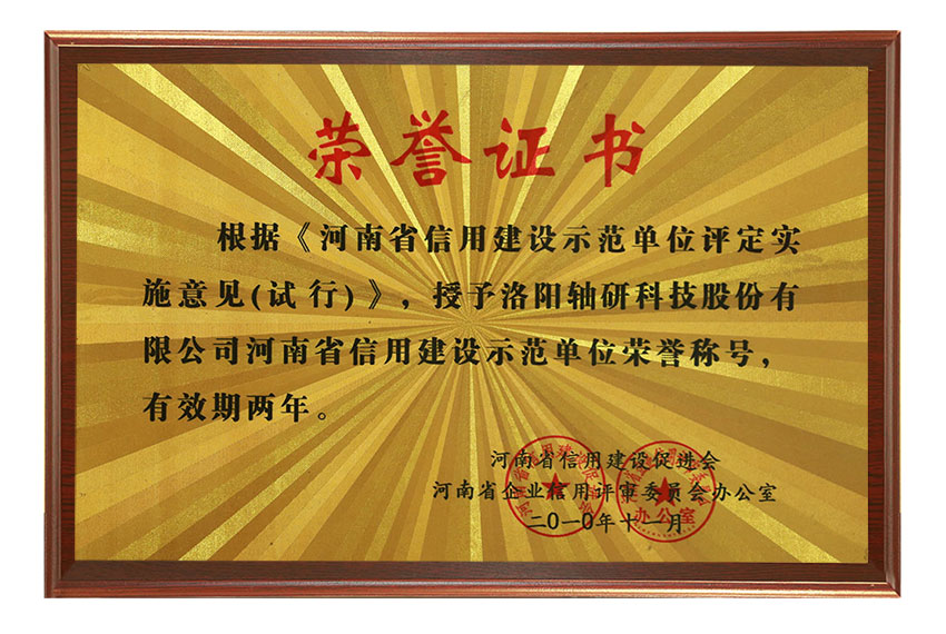 河南省信用建設(shè)示范單位榮譽稱號