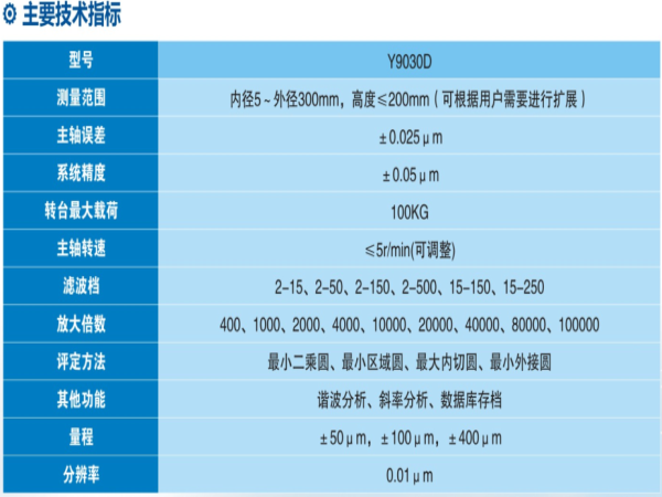Y90D系列圓度測量儀是以大承重高精度氣浮主軸為基準,采用計算機測量系統(tǒng)的轉(zhuǎn)臺式通用型圓度儀,適用于大型回轉(zhuǎn)體工件的的圓度、波紋度、同軸度等參數(shù)的測量,主要應用于大型精密機械制領域。儀器主要由氣浮主軸、精密調(diào)平調(diào)心工作臺、花崗巖臺面和立柱、高精度電感測頭、精密旋轉(zhuǎn)編碼器、驅(qū)動控制電箱、高精度測量電箱、空氣過濾干燥系統(tǒng)以及基于windows XP的專用測量分析軟件組成。